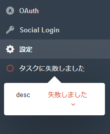 実行中は、定義したステップ数を最大値とした円形のプログレス表示がダッシュボードに表示されて、非同期でステップを順次処理していくのですが、プログレス表示は一度エラーにならないと表示されません…。”desc”の部分はTaskクラスで定義したdescriptionが表示されます。