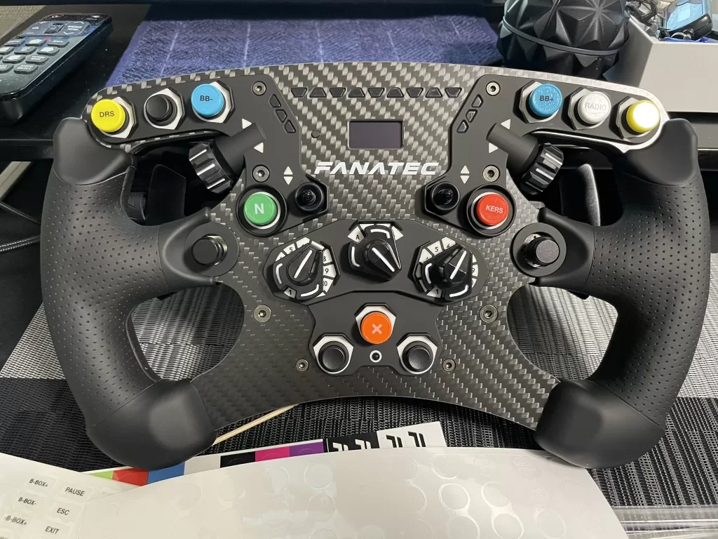 今回のF1 22からVRでも遊べるようになり、HMDを被っていても手元でいろいろなんとかしたいということで、FANATECのフォーミュラステアリングを購入しました。