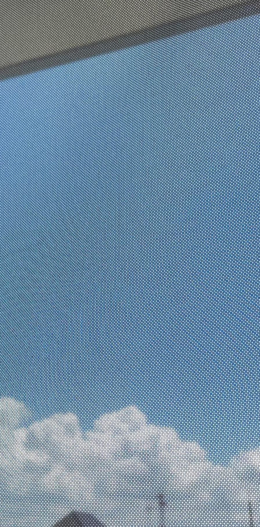 遮熱布の外側(太陽光が当たる側)は金属コーティングされていて銀色、内側は黒色です。面ファスナーでガラスに貼り付けるだけなので簡単と思いきや、窓ガラスに合わせてカットするのが少々手間。布をピンと貼らないとハサミで切れない(裁ちばさみがあれば楽に切れるかも)ので、結局、面ファスナーで固定したあとでカッターで切りました。