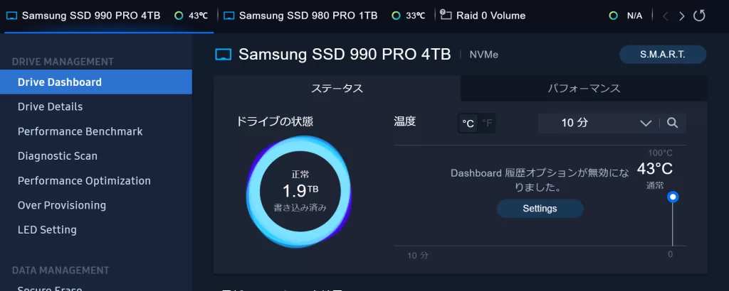 最後にSamsung Magicianでファームウェアのアップデートを行って換装は完了。